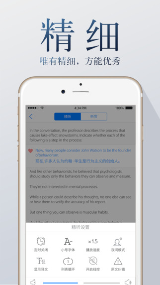 托福聽聽app托??忌可矶ㄗ龅穆犃δM練習(xí)、逐句精聽與聽寫功能,認(rèn)真地對每一個(gè)句子進(jìn)行精聽,吃透句子,方能從根本上提高托福的聽力水平。提供的所有聽力備考材料,都以句為單位進(jìn)行了精確的切分,因此大家在練習(xí)時(shí),可以一句一句反復(fù)回聽,直到吃透為止。我們和你一樣,認(rèn)真、精細(xì)!