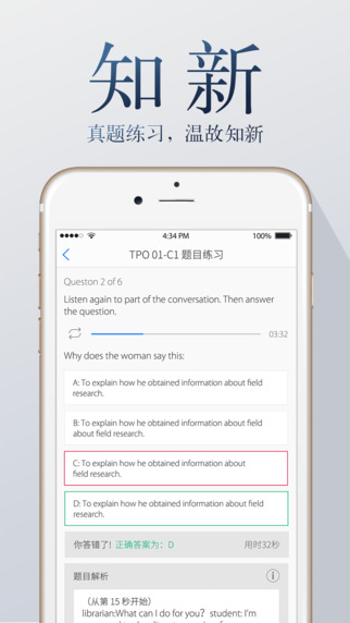 托福聽聽app專業(yè)為正在靠托福的學(xué)子們打造的托福英語聽力練習(xí)應(yīng)用,托福聽聽app包含TPO、老托福Part C和美國科學(xué)人60秒(SSS)等大量題庫,多聽聽托福聽聽app托福英語聽力就這么簡單。