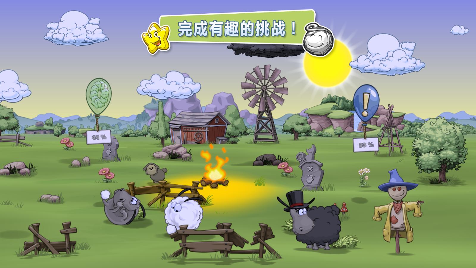 每只動(dòng)物都需要你的關(guān)注!這些滾圓的綿羊喜歡休閑娛樂(lè)!讓你的綿羊跳躍起來(lái),并使用蹦床、蹺蹺板和秋千主動(dòng)和牠們一起玩耍!旁觀你的寵物們互相交流,給牠們一些物品,然后觀察牠們的反應(yīng)!使用有趣的物品自定義你的羊群牧場(chǎng),并從狂野西域和海盜領(lǐng)域等不同設(shè)定中進(jìn)行選擇。旁觀你的羊群白天不知疲憊地奔跑,而到了晚上就依著溫暖的篝火而眠。盡可能讓綿羊保持心情愉快、身體健康,防牠們變成天空中綿狀的大云朵。