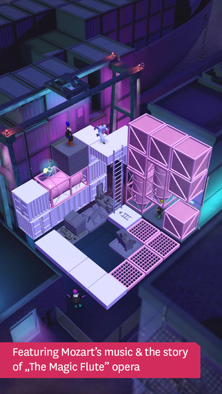 《魔笛》本身是莫扎特由童話劇本改編而成的杰出歌劇,第一次公演還是在200多年前了。而《莫扎特的魔笛》是以這出歌劇為背景,講述了一群在歌劇院中與女王、巨蛇甚至是地震對抗的普通人求生的故事。在玩法上,本作采用了很少見的三維體力拼圖,這與《紀念碑谷》的玩法有天壤之別。