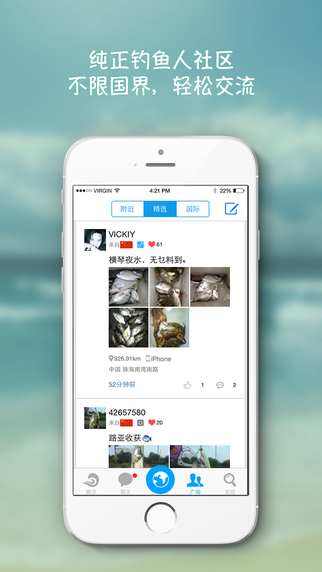 2、純正釣魚人社區(qū),可以與來自世界各地的釣魚愛好者交流經(jīng)驗(yàn)、分享漁獲,結(jié)識(shí)釣友,并隨時(shí)了解釣友最新動(dòng)態(tài)。