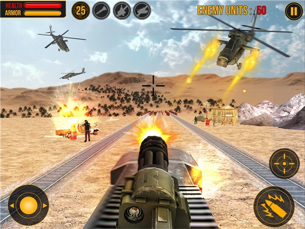子彈頭列車正在已抓獲的黑色行動(dòng)組織境內(nèi)緩行。憤怒的敵人已經(jīng)橫跨鐵軌并切斷了軍隊(duì)運(yùn)送的武器和物資??靵砑尤胛覀?,完成現(xiàn)代軍事攻擊任務(wù)吧!