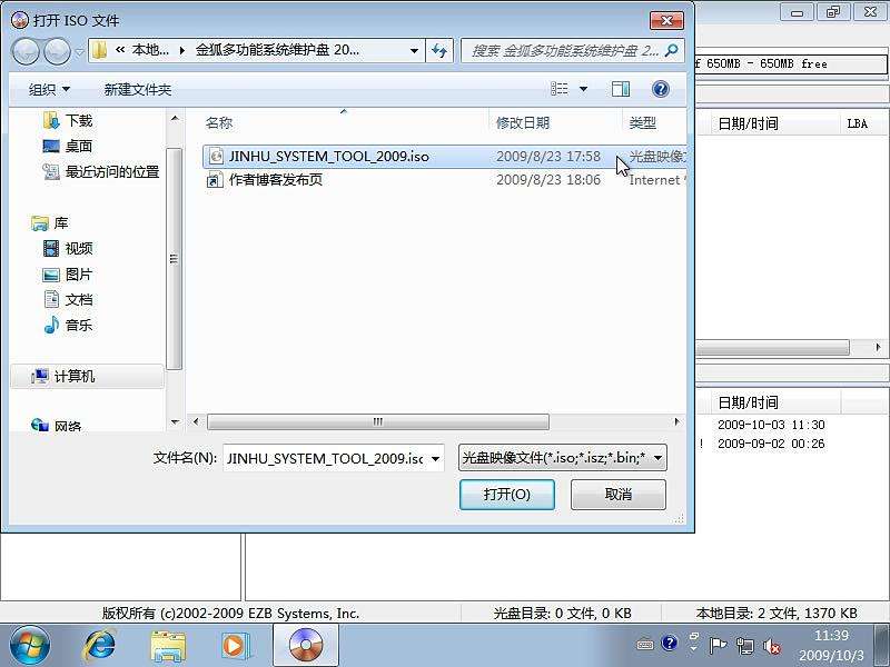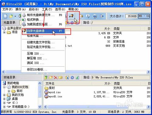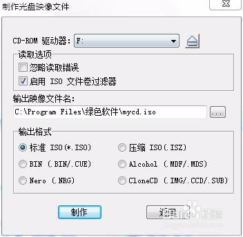 打開制作光盤映像文件對話框然后單擊制作ISO文件。