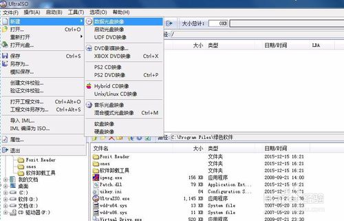 講硬盤上的文件制作ISO文件,選擇文件——新建——數(shù)據(jù)光盤映像命令。
