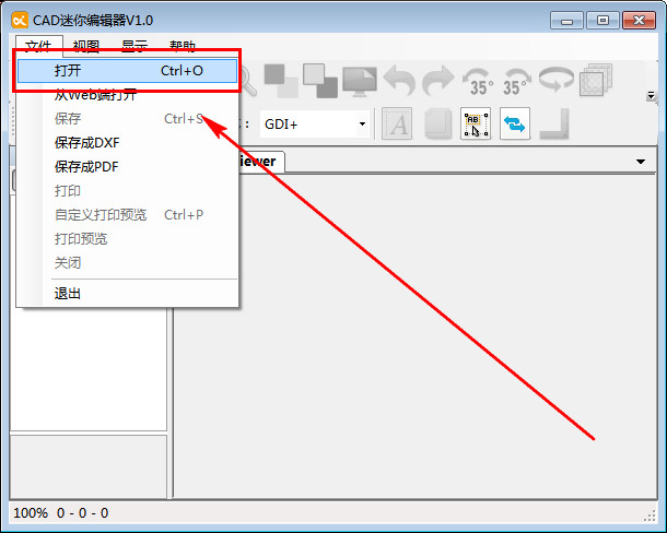 安裝CAD迷你編輯器之后我們打開軟件,點擊文件==打開(*或者ctrl+o)我們就可以打開你想要看的cad圖紙