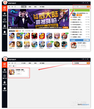 2、安裝完成后打開(kāi)軟件,在“游戲庫(kù)”中搜索“王者榮耀”手游,或者直接下載王者榮耀手游然后安裝到新浪手游助手;