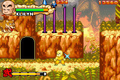 第6關(比拉夫城)里面的機關比較多,而且路線有兩條(在有五個可擊碎石頭的地方,選擇向前或向下再向前。悟空過關建議走其中一條,二周目讓克林走另一條,兩條路線在第三個場景開始合流),不過里面的寶物很多,建議大家在里面找一下(讓悟空找道具時,不論走哪條路線,都需要用到蹬墻跳,方法是在墻壁出面對墻壁跳躍時按反方向+跳),閃光的機器人沒血后會自爆,打完后須要及時躲開。本關出現(xiàn)的新敵人,藍色兵會連射兩發(fā)子彈,小孫可以在地面用上+B轉棒子當回或用其它攻擊消掉,綠色兵扔的炸彈可以在空中用上+B踢回或用其它攻擊消掉。這兩種能力對以后的關卡比較有用,建議玩家可以再次鍛煉。本關的BOSS是比拉夫和修,修的大機器人攻擊方式是噴火,跳躍攻擊,困難難度和boss挑戰(zhàn)賽會發(fā)射導彈。比拉夫的小機器則會甩手臂和附帶全身攻擊判定的跳躍,困難難度和boss挑戰(zhàn)賽會投擲炸彈。注意不要靠太近,不然兩個一起打HP很快就沒了,推薦一個一個拉開打,或者是用Lv.2沖擊波一下打兩個。其中困難難度,修駕駛的大機器人血量增加一條,兩人的攻擊速度都會上升,推薦拉開距離磨血,優(yōu)先擊殺比拉夫,修就好對付了。(本關有道具讓悟空沖擊波的可蓄力等級上升和如意棒伸長,伸長的能力體現(xiàn)在普通攻擊連擊中以及上+B旋轉持續(xù)時間上升)