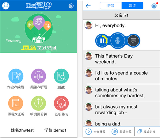 口語(yǔ)100就是這樣一個(gè)訓(xùn)練場(chǎng),Aryn是隨時(shí)常駐的智能教練。--我們?yōu)橹袊?guó)學(xué)生和老師,帶來(lái)前所未有的聽(tīng)說(shuō)訓(xùn)練工具,解放老師,提高學(xué)生。任何內(nèi)容(無(wú)論是課文同步,還是新概念)跟下來(lái),聽(tīng)說(shuō)都能快速提高。讓聽(tīng)說(shuō)作業(yè),變得簡(jiǎn)單有效。