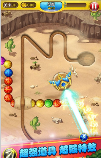 《天天愛祖瑪》是一款休閑刺激的休閑游戲。游戲的畫面以古老埃及文明為背景,游戲的風(fēng)格十分統(tǒng)一,藝術(shù)性很強(qiáng),即使從欣賞古埃及風(fēng)情文化的角度,也是不可不玩的佳作之一。本年度最鮮萌、超有趣、巨經(jīng)典的祖瑪游戲,獨(dú)創(chuàng)叢林、山地、沙漠、雪原、巔峰五大奇觀,更有豐富關(guān)卡配合超炫地圖,帶你重溫經(jīng)典,再拾童趣,彈指間彩珠滾滾,成就一代祖瑪冒險(xiǎn)王。