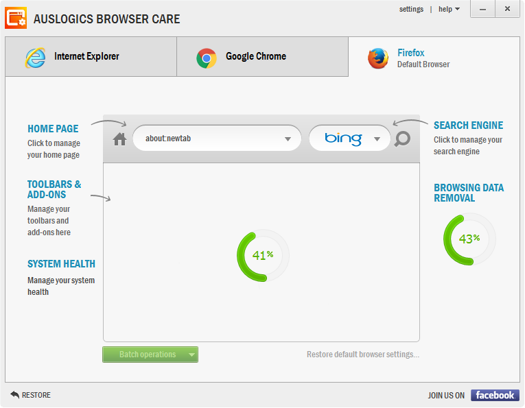 解決辦法:Auslogics瀏覽器保養(yǎng)自動檢測安裝在計(jì)算機(jī)上流行的瀏覽器。