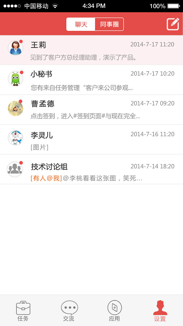 任務協(xié)作:工作內(nèi)容隨手記工作任務及時查隨時隨地編寫工作日志,玩微博一樣@給上級領導及團隊人員,加強團隊協(xié)作;管理者可隨時隨地分享工作內(nèi)容,便于團隊人員第一時間獲取工作內(nèi)容,提高工作效率。團隊溝通:暢想企業(yè)微信般溝通可隨心自由組建群組,如項目小組、銷售小組、售后小組等;微信式交流,并兼具企業(yè)內(nèi)部工作特性,簡單方便,暢想便捷溝通。