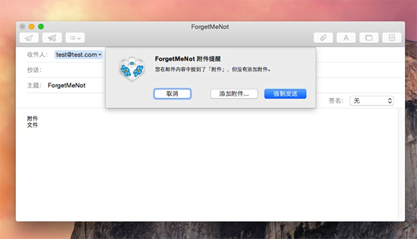 ForgetMeNot是一個實用的郵件提醒工具,避免您在發(fā)送郵件時出現(xiàn)遺忘添加附件的情況。