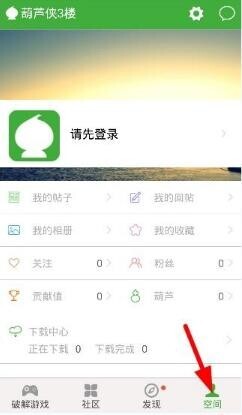 2、開啟軟件,點擊“空間”選項,完成注冊登錄操作,具體步驟如下圖所示: