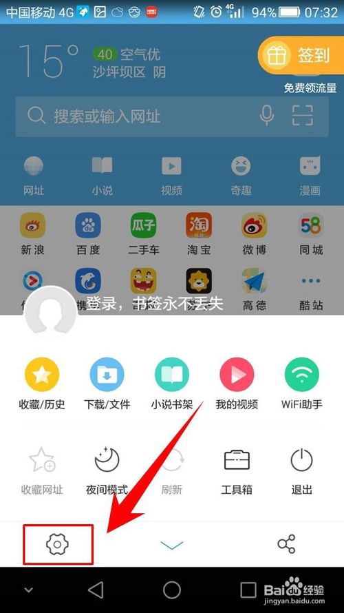 首先打開UC瀏覽器,然后點擊左下角的設(shè)置按鈕如下圖所示。