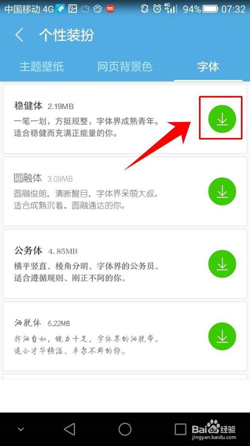 進入字體設(shè)置頁面后,在列表中選擇一種字體,點擊字體后方的下載圖標,如圖所示。