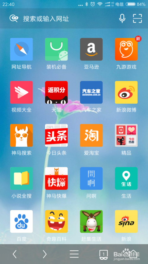 回到c主界面,我們可以看到已經(jīng)更換成自己想要的主題風格的uc瀏覽器界面了。