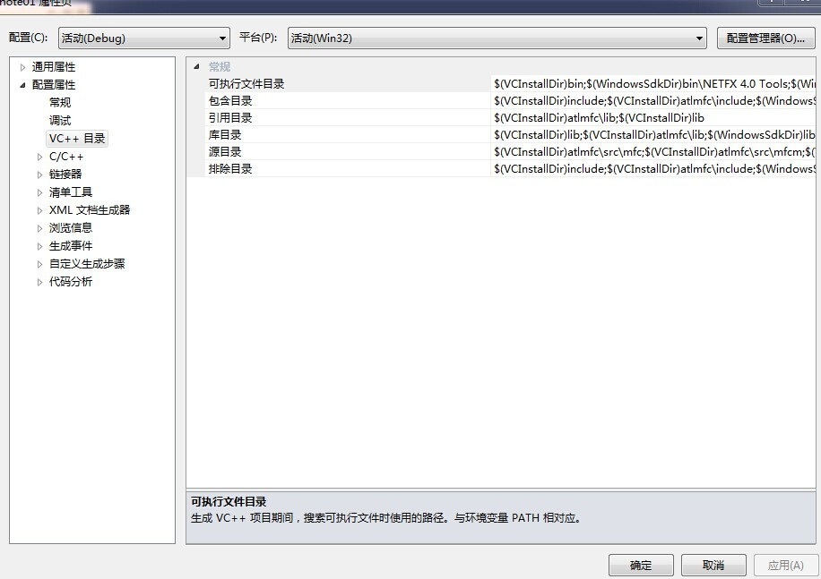 建立好空白工程后,單擊選項工程文件,右擊鼠標在打開的快捷菜單中選擇“Property”,打開工程的屬性頁面并在屬性頁面中找到Vc++ Directories選項