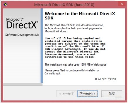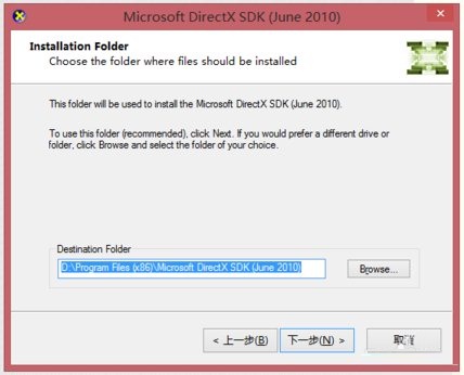 下載DirectX SDK,完成后雙擊安裝文件進行安裝,按照提示進行操作即可以完成安裝步驟。本文的安裝路徑設為D:\Program Files (x86)\Microsoft DirectX SDK (June 2010)