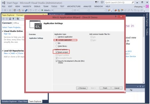 打開VS2013,新建一個空白的Win32控制臺應用程序,具體步驟如下所示