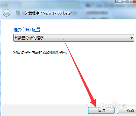 下面我們來試試卸載7Z軟件吧,這個(gè)比較小,小試牛刀一下。點(diǎn)擊左側(cè)7Z,出現(xiàn)正在分析提示