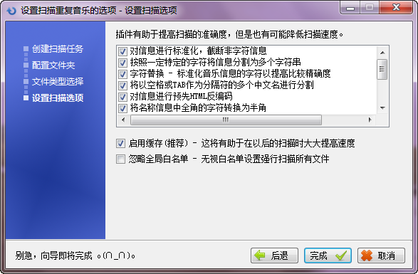 智能分解信息字符串,不再要求標(biāo)題和藝術(shù)家完全一致才標(biāo)記為重復(fù)文件,大幅提高識(shí)別率