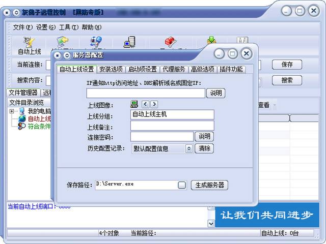 1、遠(yuǎn)程控制命令:查看遠(yuǎn)程系統(tǒng)信息、剪切板查看、進(jìn)程管理、窗口管理、插件功能、服務(wù)管理、共享管理、代理服務(wù)、MS-Dos模擬!2、捕獲屏幕:不但可以連繼的捕獲遠(yuǎn)程電腦屏幕,還能把本地的鼠標(biāo)及鍵盤傳動(dòng)作送到遠(yuǎn)程實(shí)現(xiàn)實(shí)時(shí)控制功能!