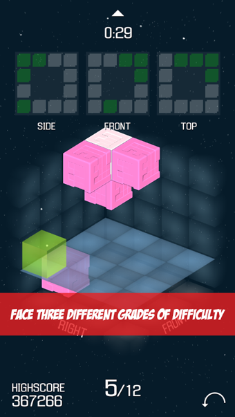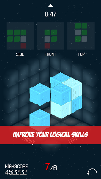 遺失的方塊是一款新穎有趣的空間解密類手機游戲,游戲玩法簡單,但是非??简炌婕业目臻g思維能力,游戲中會給出指定圖形的三維視圖,你必須通過給到的信息,靈活運動你超強的邏輯思維能力還原這個幾何體即可獲取游戲的勝利!