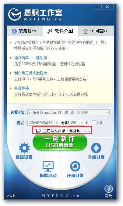 【4】制作過(guò)程根據(jù)電腦配置和U盤(pán)芯片的不同耗時(shí)長(zhǎng)短也不同,請(qǐng)耐心等待。制作完成后正確設(shè)置電腦BIOS(設(shè)置方法請(qǐng)參照設(shè)置U盤(pán)啟動(dòng)教程)即可從U盤(pán)啟動(dòng)了。為了驗(yàn)證U盤(pán)啟動(dòng)制作是否成功,可以運(yùn)行模擬啟動(dòng)。