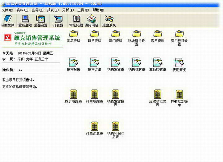 維克銷售管理系統(tǒng)是一款通用的銷售業(yè)務(wù)管理軟件,主要功能包括銷售報(bào)價(jià)、銷售訂單、銷售發(fā)貨、銷售退貨、銷售收款、客戶往來帳管理等,提供免費(fèi)下載試用。
