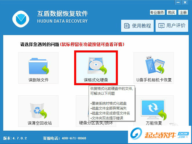 一、如何恢復(fù)格式化?1、單擊“誤格式化硬盤” 模式。
