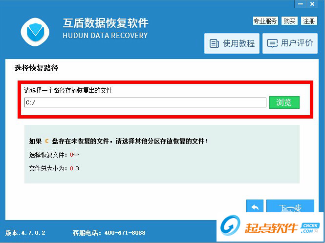 5、選擇一個(gè)盤存放需要恢復(fù)出來的文件,然后單擊下一步。(恢復(fù)的數(shù)據(jù)請放在其他盤中哦)