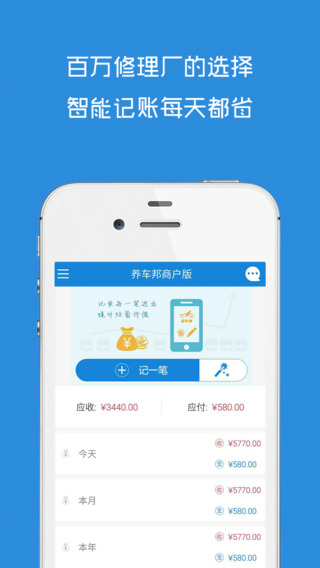 養(yǎng)車邦管理系統(tǒng)提供經(jīng)營管理,記錄每筆收入和支出,掛賬數(shù)據(jù)的處理,完善的日報,月報,年報。及時了解商戶內(nèi)的經(jīng)營動態(tài),為經(jīng)營決策提供依據(jù)。
