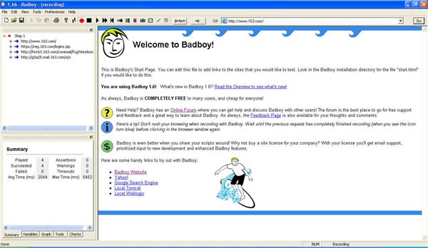 Badboy監(jiān)控internet explorer的活動,提供錄制/回放功能.