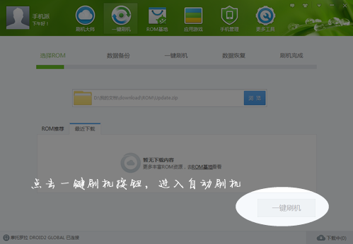 2、點(diǎn)擊一鍵刷機(jī)按鈕,進(jìn)入一鍵刷機(jī)的功能界面