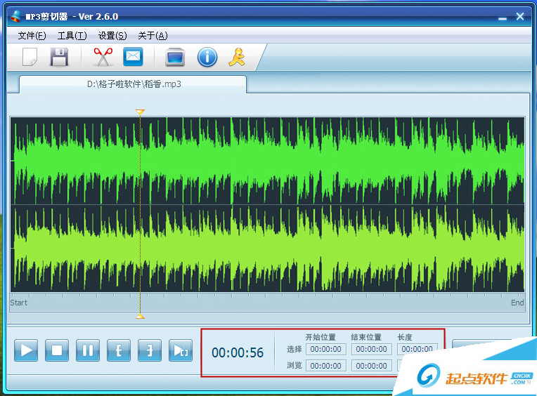 3、打開音樂后可以在下方看到“音樂播放時間”、“開始位置”、“結(jié)束位置”、“長度”。