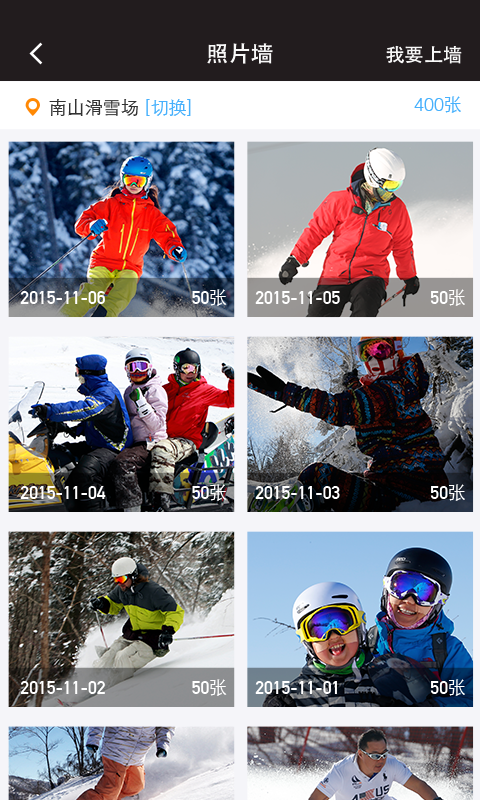 照片墻可以按照雪場查詢影像資料。