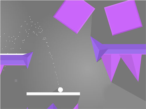 游戲在解謎玩法上并沒有引入太過復(fù)雜和深奧的關(guān)卡設(shè)計,僅僅圍繞常規(guī)的跳躍(jump)、彈跳(bounce)和滑動(slide)三個簡單的動作展開,玩家必須熟練地掌握這三項基本技能,操作小球在豐富多彩的極簡世界中一路前行。而且,游戲中的機關(guān)設(shè)計和鋪排都展現(xiàn)了一定的難度,對玩家的應(yīng)變能力要求不低。