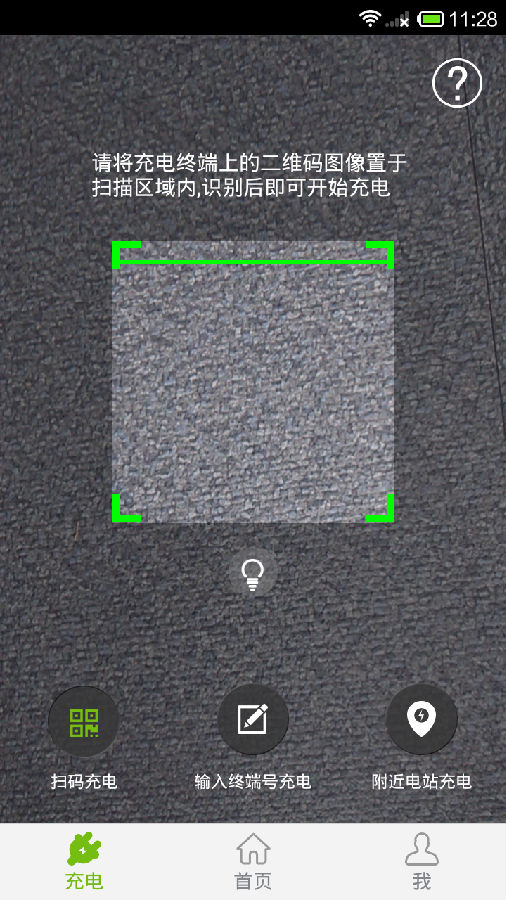 點擊左下角“充電”圖標,進入“充電”界面,對準終端上的二維碼掃一掃。