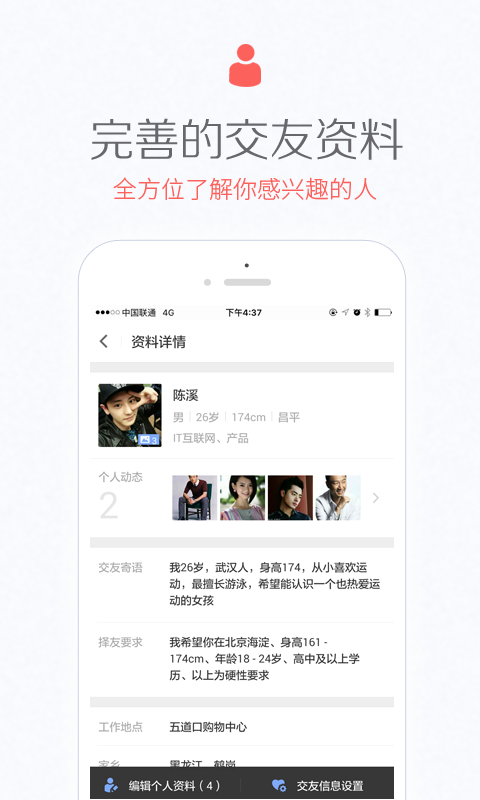 -認(rèn)識(shí)異性的方式:只推薦你感興趣的、同行、同校、公司等等-創(chuàng)新的約會(huì)方式:真正的健康的從線上認(rèn)識(shí)到線下認(rèn)識(shí)
