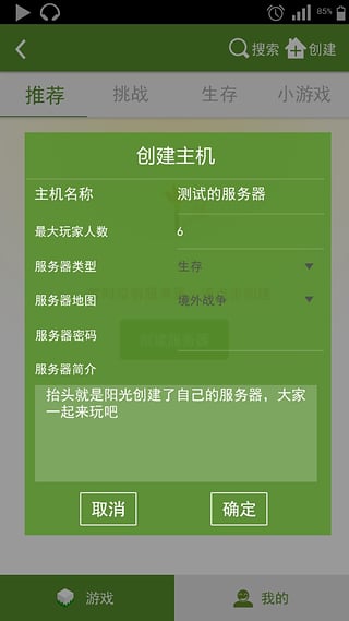 1、[手機(jī)建服]-您可以和您的小伙伴在任意有網(wǎng)絡(luò)的地方用自己的手機(jī)創(chuàng)建服務(wù)器一起游戲,再也不需要花額外的金錢去租用服務(wù)器。