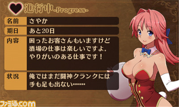3DS斗神都市是一款由Image Epoch制作發(fā)行的一款角色扮演游戲,《斗神都市》將以系列第二作為基,系統(tǒng)、角色等都將進(jìn)行重新制作,玩家要在游戲中與來自世界各地的強(qiáng)者進(jìn)行戰(zhàn)斗,并以最強(qiáng)戰(zhàn)士“斗神”為目標(biāo),當(dāng)然,與各位女主角的香艷畫面也不會少。