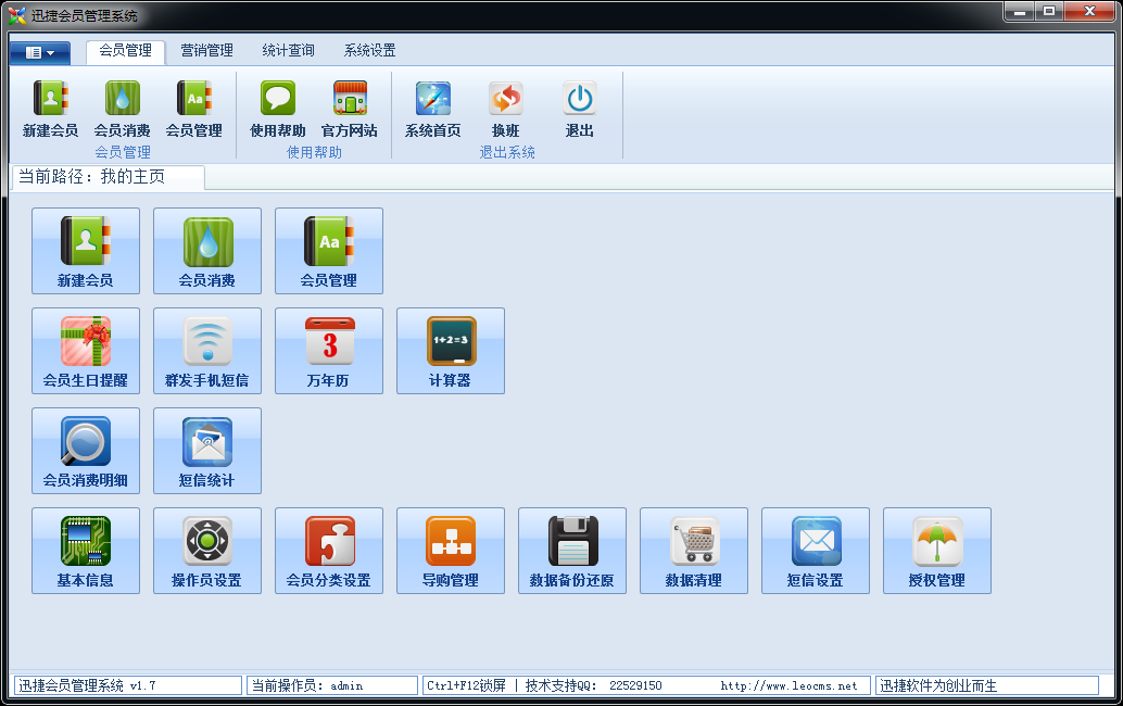 迅捷會(huì)員管理系統(tǒng)是一款專業(yè)的會(huì)員管理系統(tǒng)軟件。該軟件不僅小巧綠色,還擁有實(shí)用的特色功能,會(huì)員管理、系統(tǒng)備份還原、報(bào)表統(tǒng)計(jì)以及強(qiáng)大的短信功能。