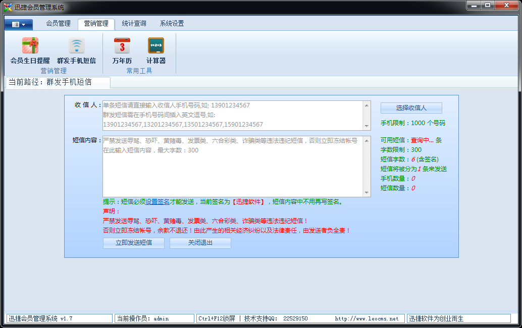 群發(fā)短信功能,讓會(huì)員第一時(shí)間接收到促銷打折信息。