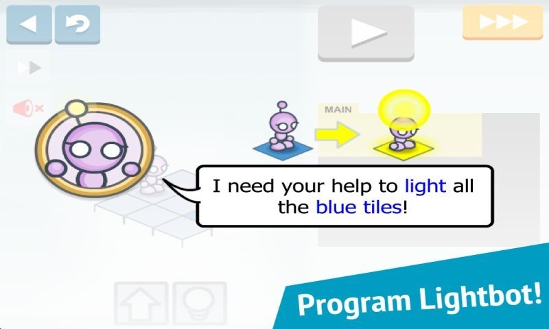 燈泡編碼謎題(Lightbot Jr 4+ Coding Puzzles)是一款益智解謎游戲。游戲中,玩家需要為燈泡機(jī)器人設(shè)定編碼路線,讓其將所有的燈泡點(diǎn)亮。通過這樣的解謎游戲,讓玩家了解簡單的編碼邏輯,以及調(diào)試問題和解決問題的能力。游戲目前一共有42個(gè)關(guān)卡,可以試著挑戰(zhàn)一下哦~