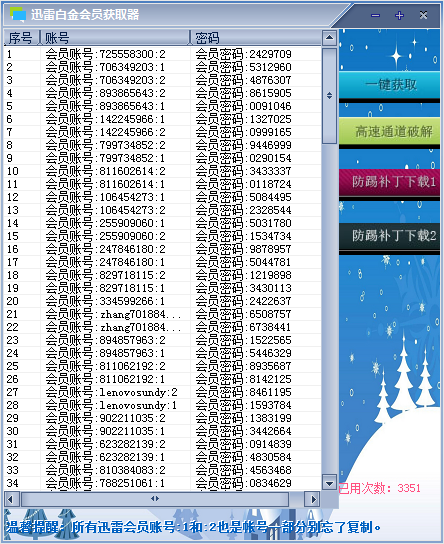 迅雷白金會員獲取器是一款綠色免費的最新版的專業(yè)獲取會員VIP賬號的工具。該軟件可一鍵獲取最新迅雷白金會員賬號。