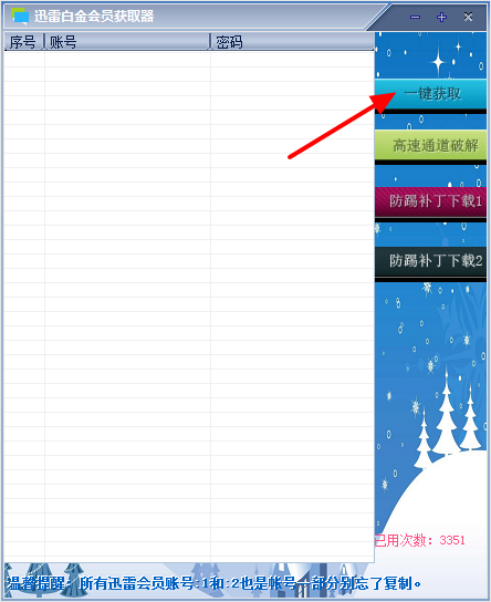 1、打開迅雷白金會員獲取器2015,點擊【一鍵獲取】