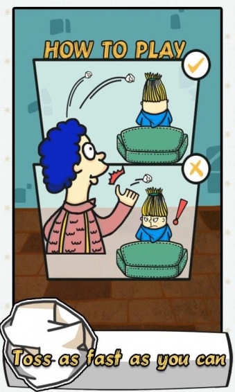 狠狠的用紙團砸你討厭的室友吧你喜歡緊張刺激的新游戲么?現(xiàn)在下載它,來盡情發(fā)泄你的憤怒吧!當(dāng)你心情不好,需要發(fā)泄的時候怎么辦?快來下載它,狠狠的用紙團砸你討厭的室友吧。趁著沙發(fā)上的室友沒有回頭的時候瘋狂點擊Throw按鈕去發(fā)射紙團,當(dāng)室友回頭發(fā)現(xiàn)你在用紙團砸他,游戲就結(jié)束了。