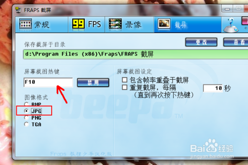 3、切換到截屏頁,默認(rèn)截屏快捷鍵是F10,這樣我們打游戲的時(shí)候可以快速的截取自己精彩戰(zhàn)斗的畫面,圖片保存為jpg的格式