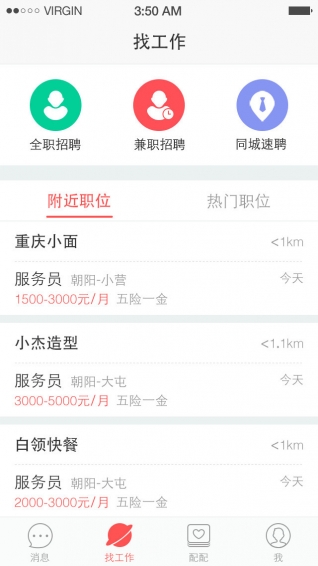 【招聘分類】:為了滿足各行各業(yè)的求職者,相繼提供了“全職招聘”、“兼職招聘”、“同城速聘”,用戶根據(jù)自己實際情況選擇自己需要的應(yīng)聘方向;
