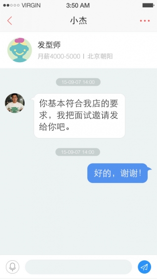 2.配配工作界面優(yōu)化、右滑喜歡工作后商家將收到你的來訪信息~